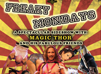 Freaky Mondays is a dinner show concept created by Magic Thor. It´s framing is based on a whole evening programme, with a host whom present specatacular and mesmerizing international sideshow perfromers.